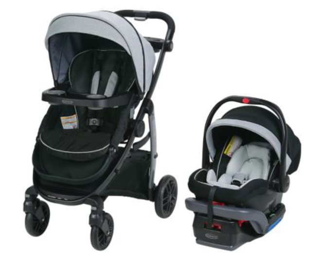 - Travel System Stroller: These can cost a little more upfront but travel systems come with an infant carseat that is compatible with the frame. Nobody has time to be matching up accessories when your main priority is keeping your baby safe and alive. Most travel systems come with convertible stroller which means you can swap the infant carrier for the toddler seat (included in travel system) and change the direction each faces. Look for one with a large canopy for sunny or rainy days. We bought the Graco Modes Connect LX. I love the tight turning radius, that you can fold it with one hand and that its lightweight (very important when we lived on the 3rd floor in the condo). It also has suspension wheels that make for a smooth ride for baby 🙂 “It is 3 stylish strollers in 1 and provides 10 versatile riding options. The reversible stroller seat allows baby to face you, reclines to create an infant carriage and then converts to a forward-facing toddler seat.” When we were researching strollers, aside from safety, what we kept in the forefront of our minds was that we planned on having multiple children and wanted something that was durable that would withstand being passed down. *Side Note: The hospital, at least in Virginia, will not let you bring your baby home unless you have an infant carseat properly installed.*