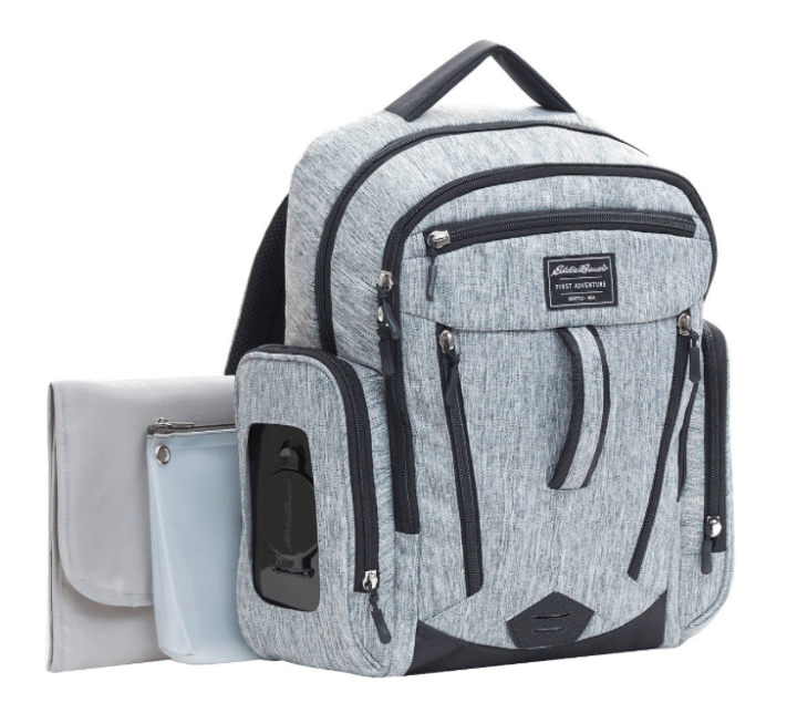 - Diaper/Baby Bag: The factors considered when deciding on our bags (yes, we got two different styles) were cost, quality, efficiency. Our current bag in rotation is our Eddie Bauer backpack. It’s spacious, lightweight and has been my go-to now that I am 36 weeks pregnant and always have a wiggling 21 month in tow. Being able to throw this baby on my back to free up my hands is everything and low-key, it helps me keep my balance now that I’ve entered the waddling phase of pregnancy. A couple of things that really stood out to us for this bag is that the wipes are accessible from an outside cut-out (you don’t have to open the bag to get the wipes), it has an insulated outside pocket on the other side of the bag and it comes with stroller clips. The other bag we have is a Kate Spade baby tote. It looks like your average, fashionable oversized tote but comes with extra pockets and a plush changing pad inside! This was probably my go-to when Parker was an infant as it has room for a baby blanket and toys in addition to all the basic newborn items you carry around. It’s nice to have a nicer baby bag for when attending formal events. Being a new parent doesn’t have to be drab.
