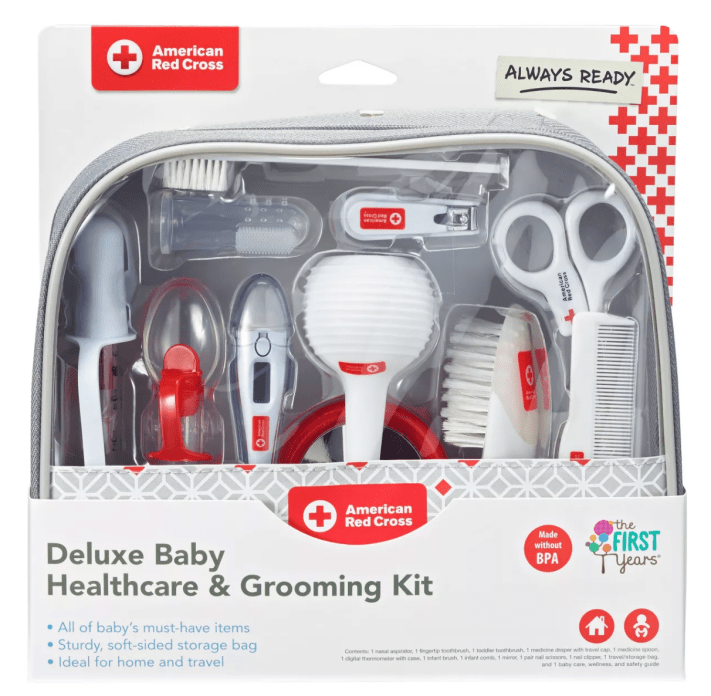 - Baby First Aid Kit w/Nail Clippers and Thermometer: Babies grow extremely fast their first few months and their nails even faster. Infants have nothing on Wolverine and it still blows my mind how fast Parker’s nails grow at 21 months. Keep an eye on their sharp baby nails and do your best to keep them low. Another item you are likely to find in a baby toiletries kit is a thermometer. If an infant runs a fever it can be life or death. I’m sure you will be fawning over your baby so be sure to have one of these on hand should you notice any out of character behavior.