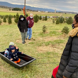 It was a beautiful drive through the Shenandoah to get to Valley Star Farm. This Christmas tree farm was much smaller than the farm we went to last year but, as my mother-in-law mentioned, Christmas tree farms in Northern Virginia are becoming a rarity. Despite its smaller size, we were warmly greeted and handed a map to help us navigate to our dream tree. One of my favorite things about cutting down our own tree is the provided snow sled to carry your tree back to the prepping station.