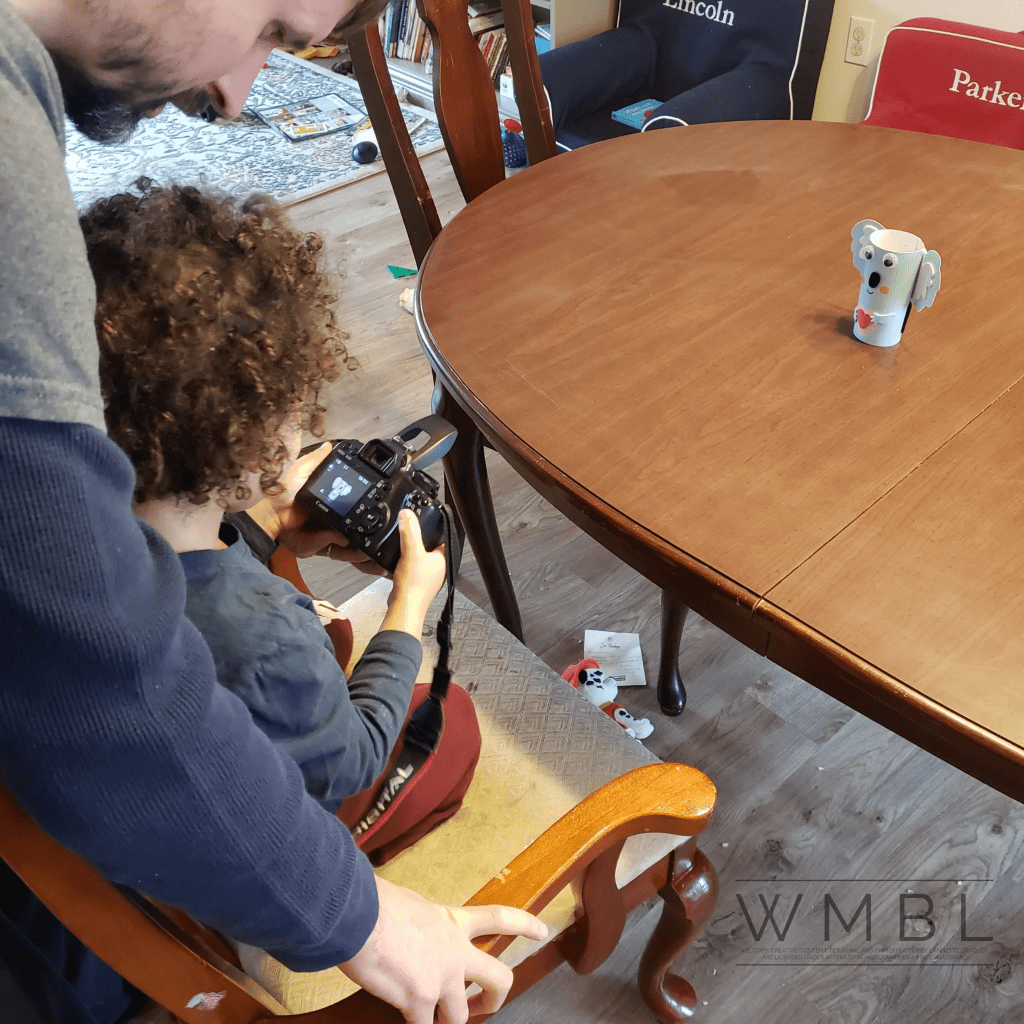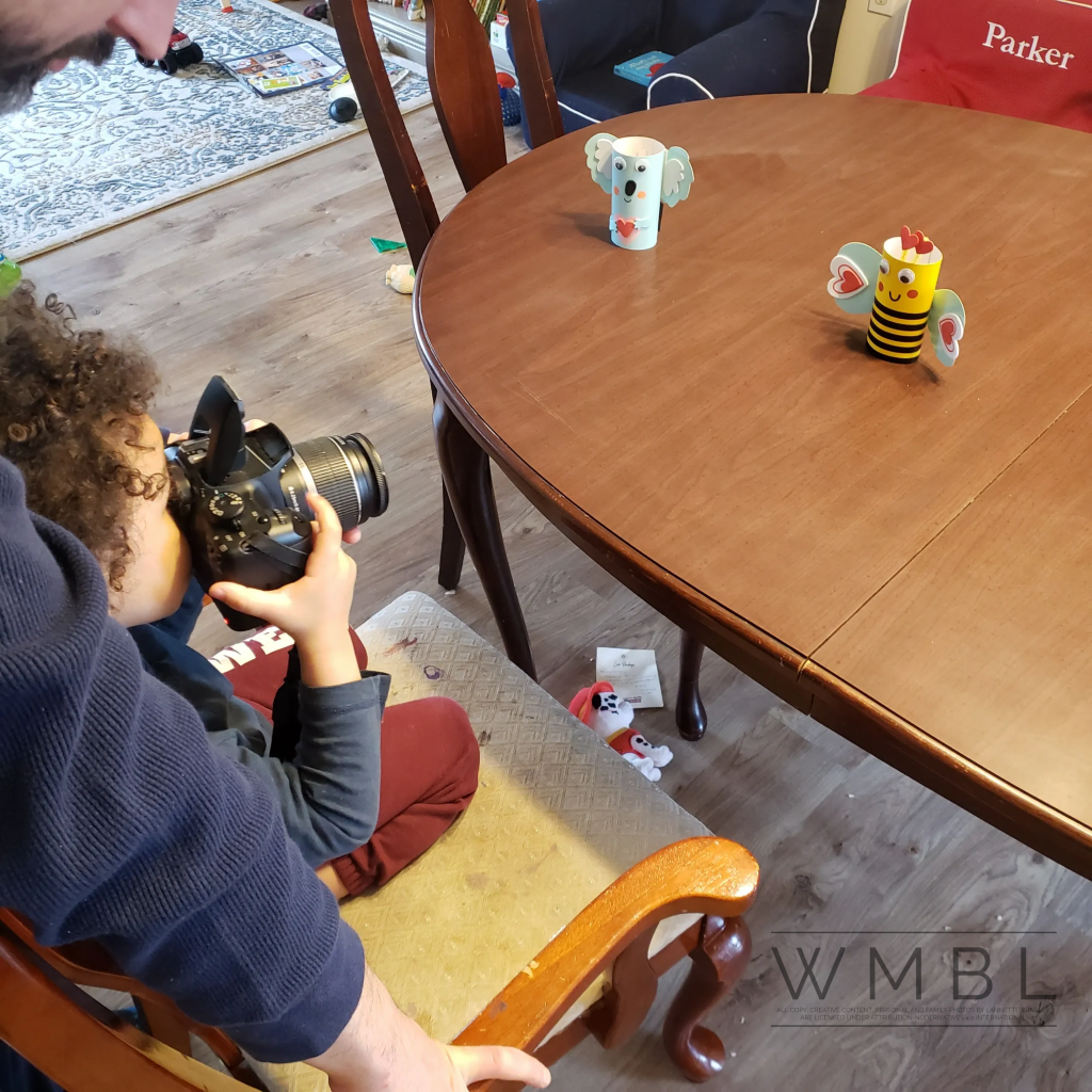 Parker has consistently shown an interest in photography over the past few months and prefers to use Brian’s camera instead of the kids camera he received for his birthday. Brian had a break in his work day and was able to come upstairs to help Parker line up his shots and take photos of his artwork.