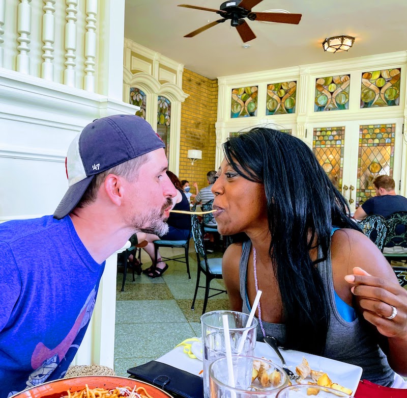If you’re not familiar with the movie Lady and the Tramp, this Italian-fare restaurant is where the iconic canine couple shared their first kiss. Of all the eateries we patronized, Tony’s had THE. BEST. FOOD. I had the kids Grilled Chicken with Roasted Potatoes meal which was delicious! The chicken was surprisingly moist and well seasoned. There were no complaints on lunch that day, even from the boys. *Side note, I often order an appetizer or kids meal when we go out so I can have room to finish what the boys don’t eat of their meals. Brian couldn’t leave until we re-created the famous spaghetti-kissing scene from Lady and the Tramp. I wonder how many times a day servers see people do that.