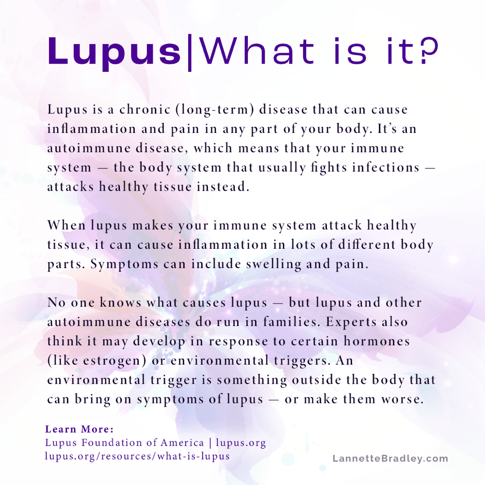 Throughout the month I will be sharing information about what lupus is, what it isn’t and how to live with it. There is so much to learn but together we can do our part to bring light to this “mysterious disease”.