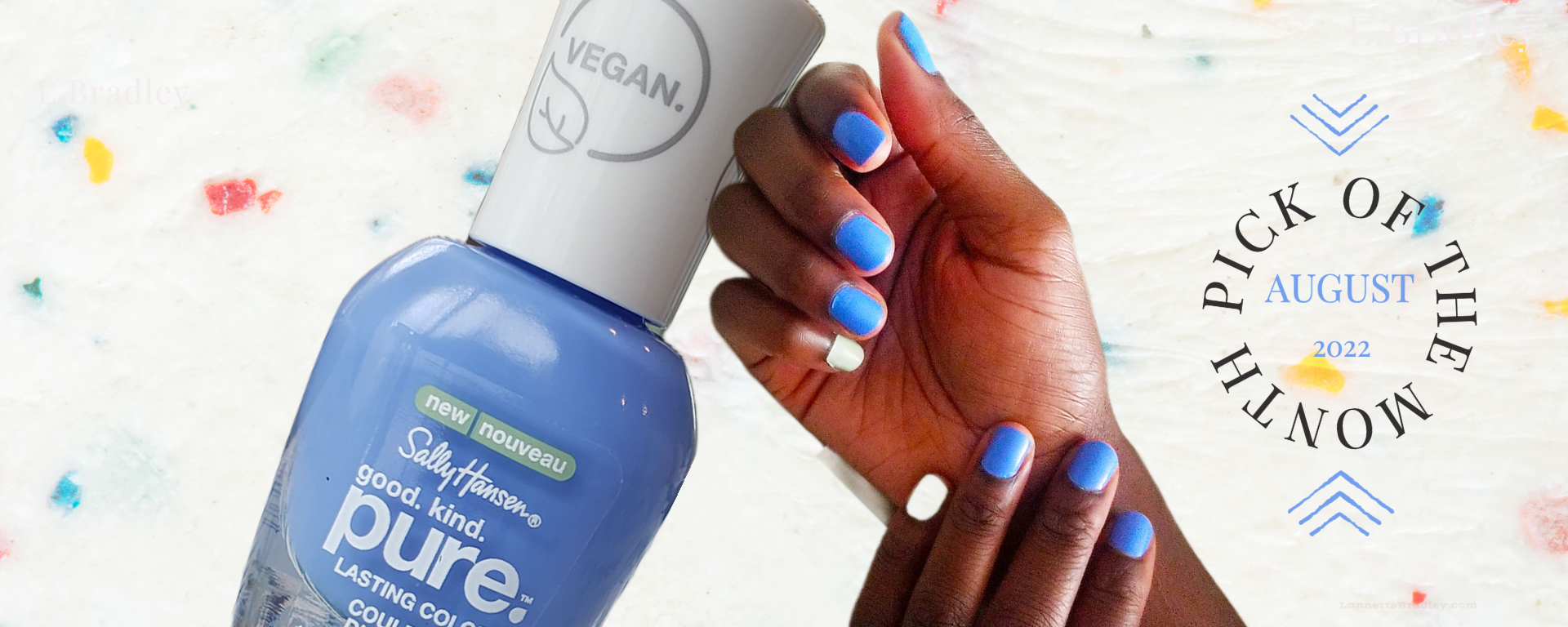 Sally Hansen’s vegan nail polish has entered the chat. It glides on smooth, has lasting power, and is better for the environment than standard nail polishes. My son picked out this surprisingly vibrant color, Blue Moonstone. In the bottle, it looks like your average periwinkle polish. When it’s applied, it has a slight glow to it.