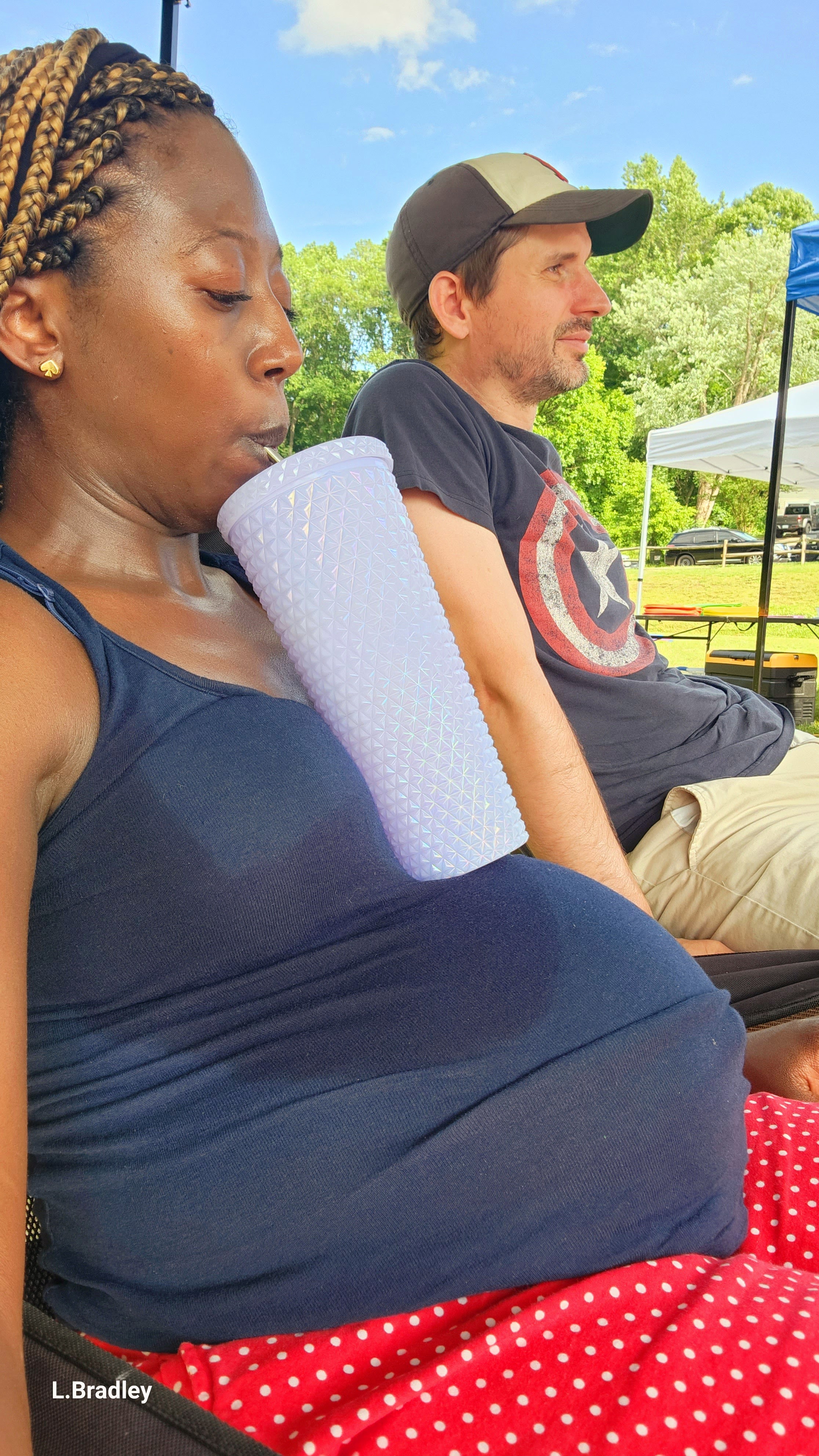 The beach kicked my ass today. There was a vendor market that ran from 3-8pm. I got there at 1pm to scope the scene and do some preliminary setup before Brian got there. I overestimated my ability to set up the tent myself and not a single person there thought to offer help. Here I am, big as a house, trying to bend over and crawl up underneath a tent in damn near 90-degree weather, and not a single person offered to help me. I wasn’t going to beg but seriously?! Anyhow, Brian arrived maybe half an hour later and his folks showed up shortly after that with a foldable table for us to use. That was their second trip up to drop off stuff for us for this event. An event that ended up being kind of a wash.