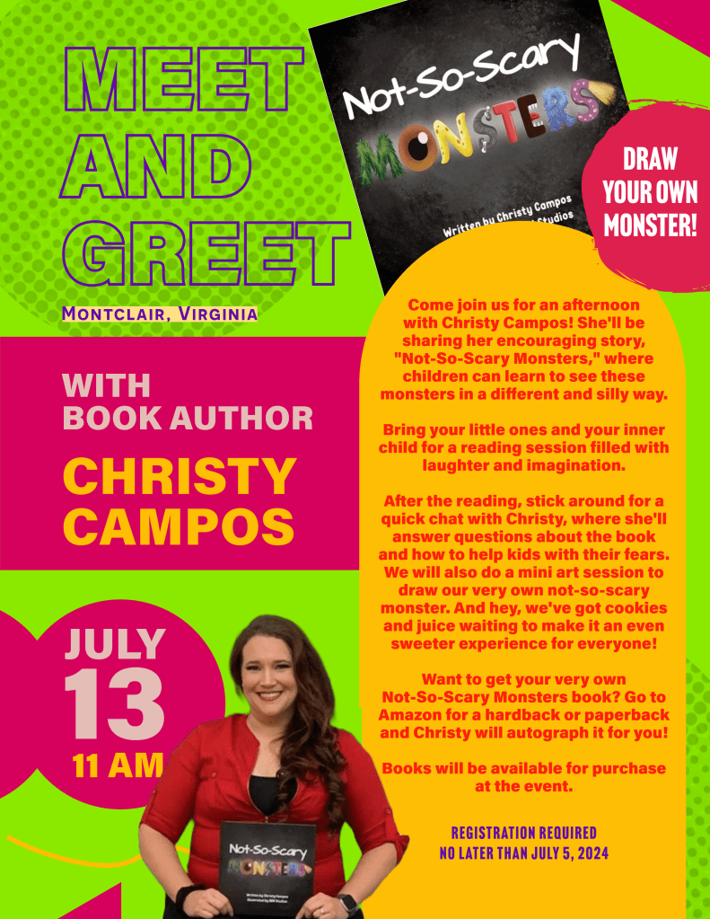 Meet Christy Campos, a big-hearted champion for kids and the creative mind behind “Not-So-Scary Monsters: A book to help kids conquer their fear of monsters.” With years of experience shaping young minds as a teacher, Christy brings a delightful and reassuring approach to overcoming fears of monsters.